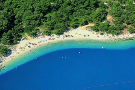 Publiczna żwirowa plaża znajduje się przy hotelu. Zejście do plaży po schodach. Leżaki i parasole słoneczne na plaży za dodatkową opłatą.